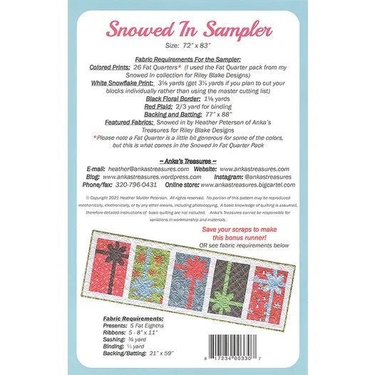 Create a stunning Snowed In Sampler Quilt with this pattern by Anka's Treasures. The quilt features 9 different block designs, and it's perfect for intermediate skill level quilters. No templates required! This pattern is not a finished product, but it comes brand new and sealed. Get creative and make a beautiful quilt with ease.